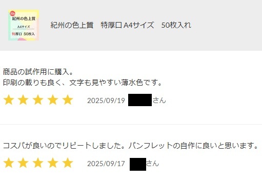 紀州の色上質紙 薄口 A4サイズ 100枚
