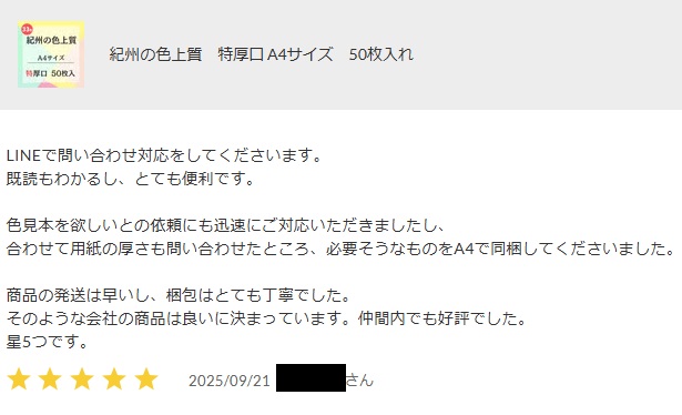 紀州の色上質紙 厚口 A4サイズ 50枚