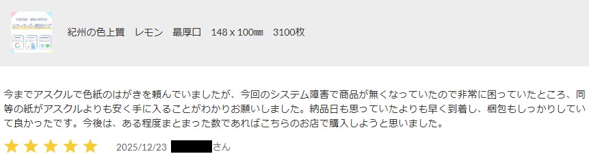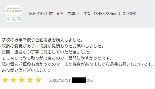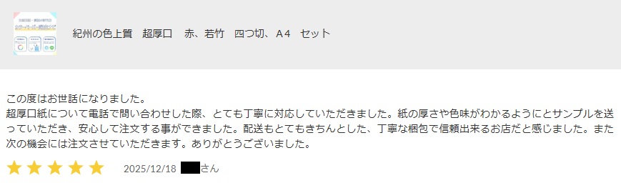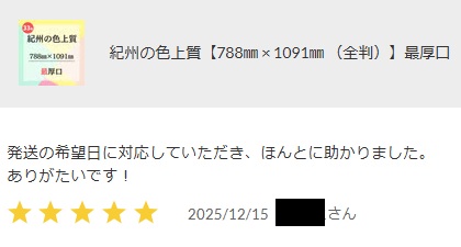 紀州の色上質紙 ご購入者様レビュー