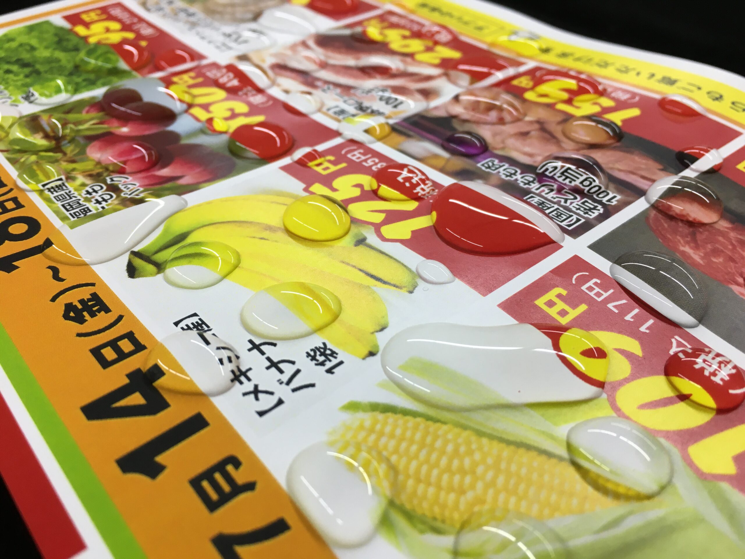 耐水紙:濡れてもふやけにくく、商品同梱のチラシ・包装紙に最適