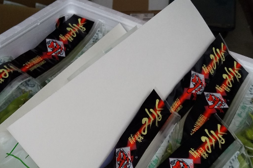 青果物吸水紙をご提案し、以下の特長をご説明しました。- 保冷剤による結露を吸収し、枝豆への水分影響を抑えることができる