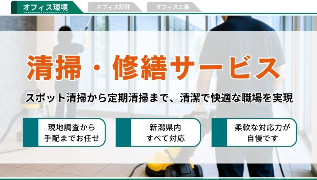 清掃・修繕業務は「新潟県 オフィスの相談窓口」へ