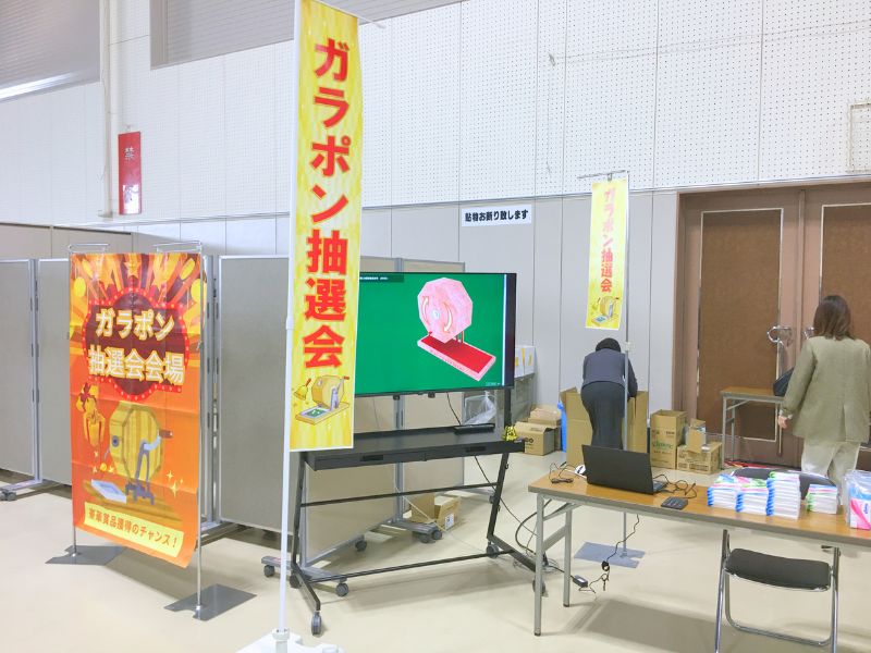 また、当日限定の特価商材や小口セット販売、ガラポン抽選会など、